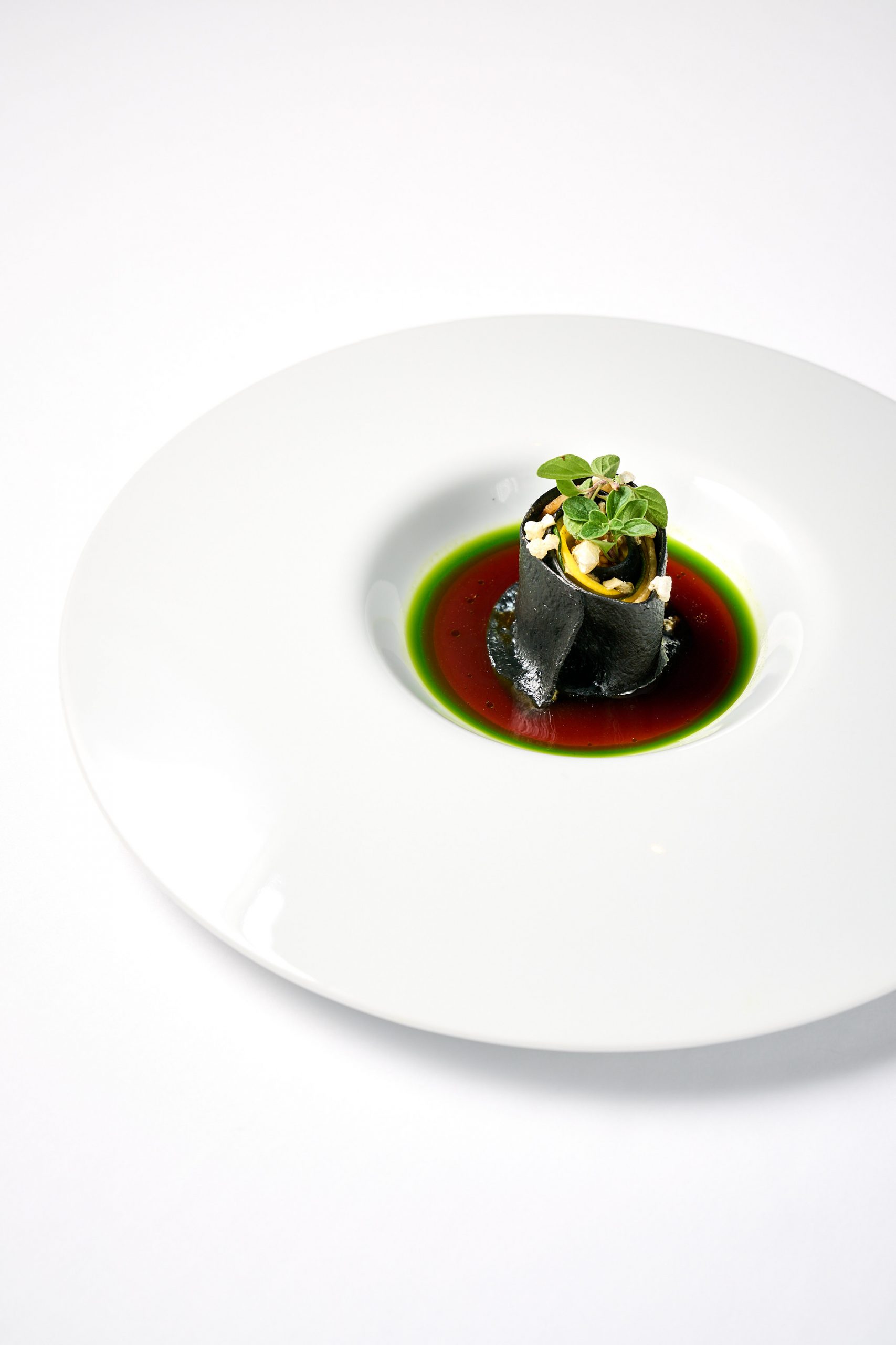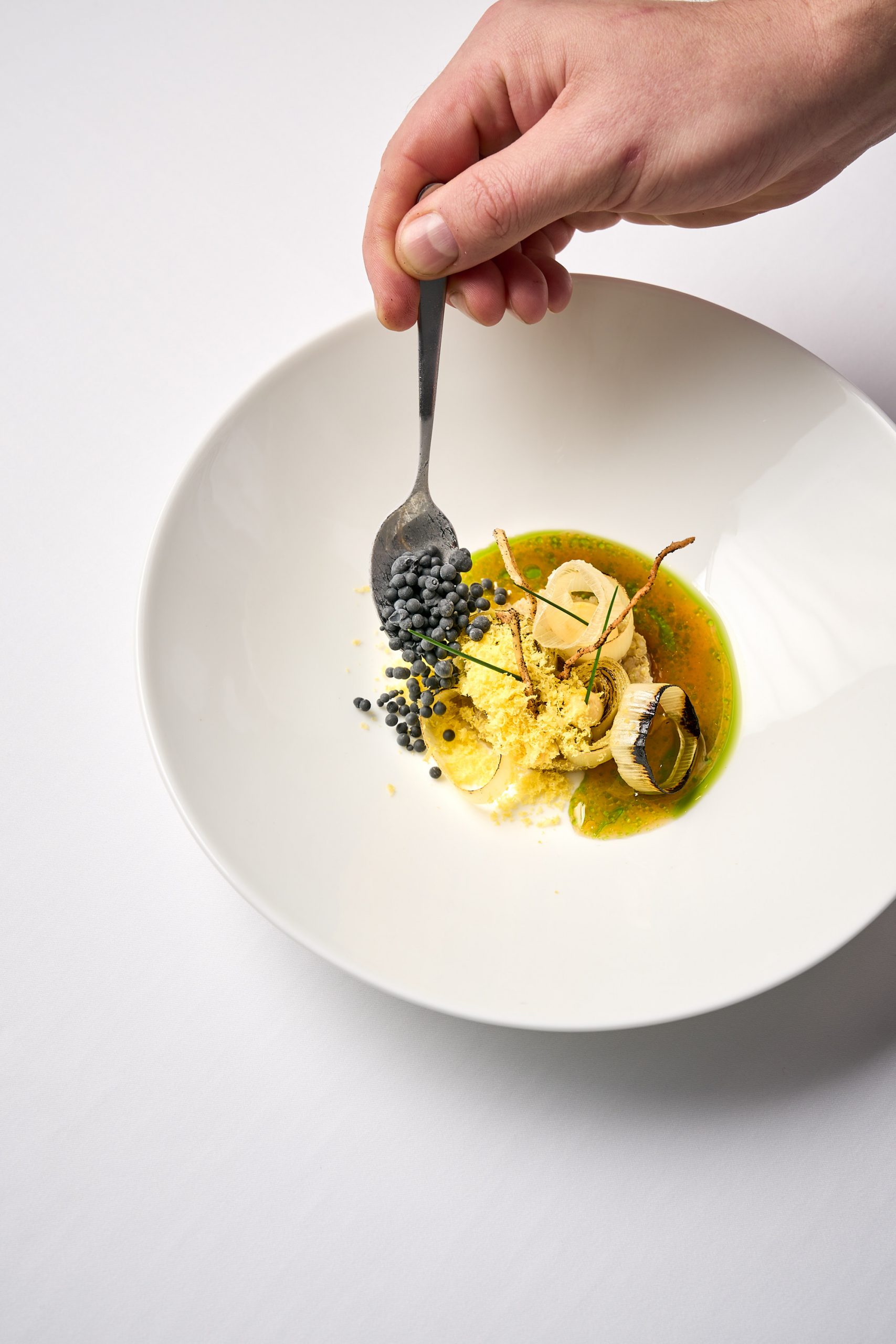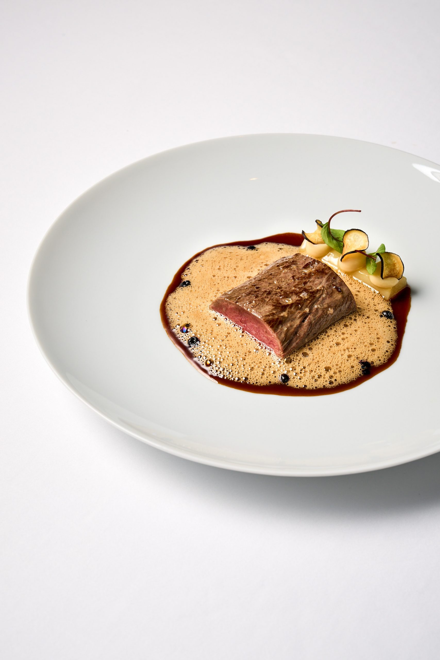 Mole, Schwarzwurzeln, eingelegter Holler, Gänseleber