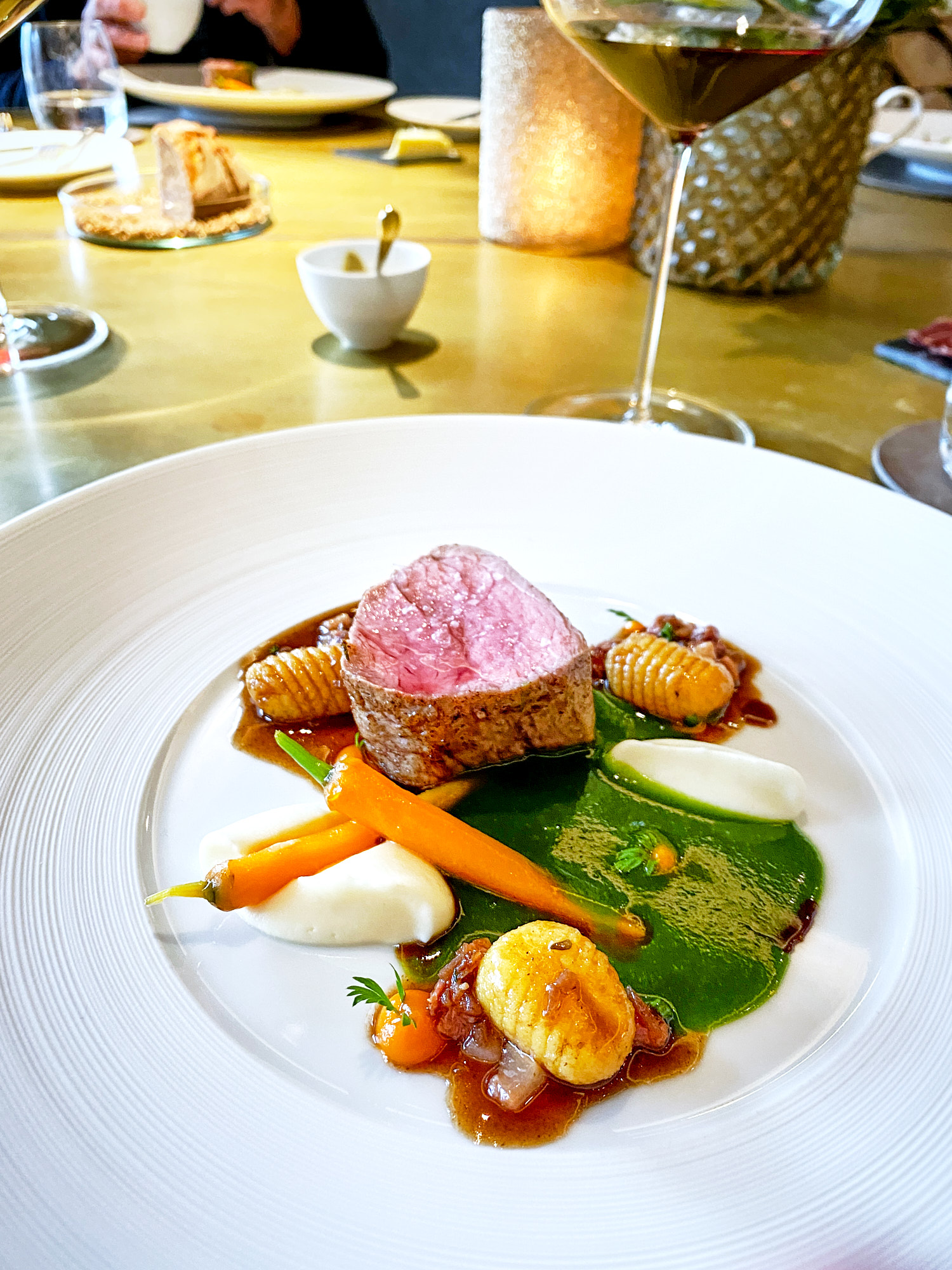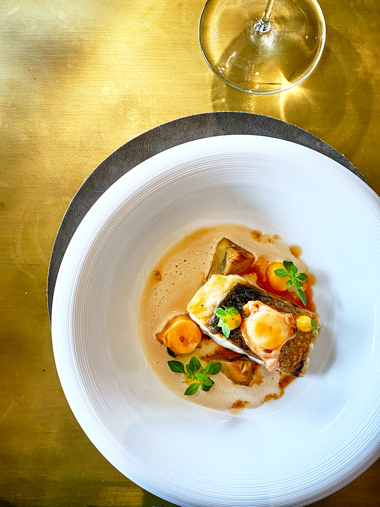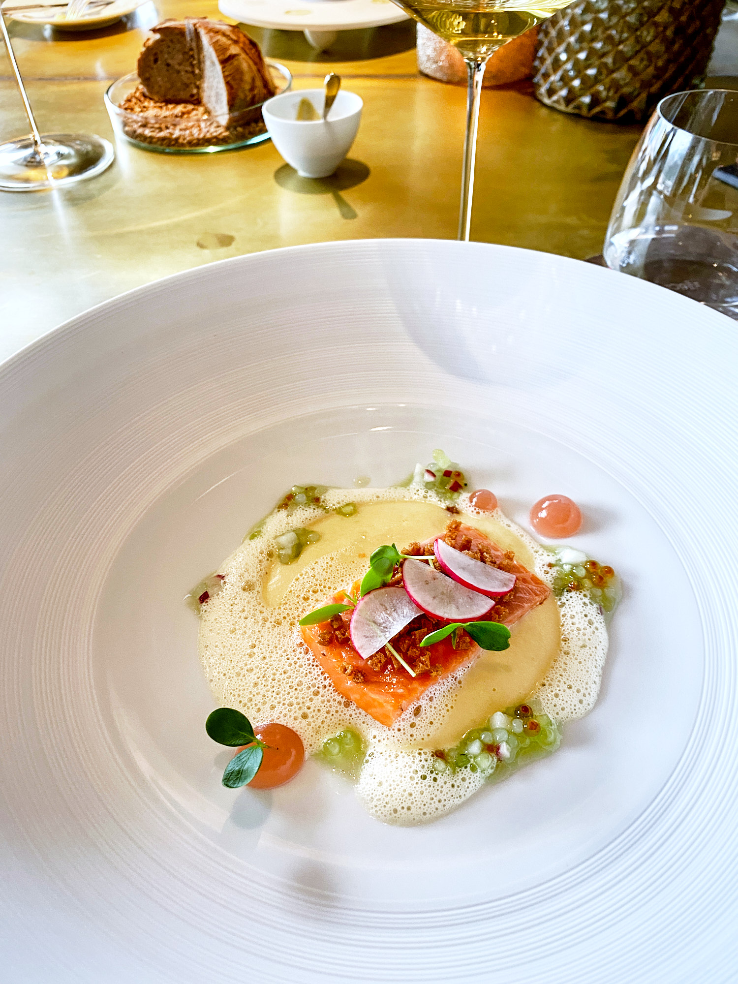 Weil es vorkommt, dass auch ich ohne Kamera esse, gibt es von diesem Abend nur Handy-Fotos zur Dokumentation. Blieb umso mehr Aufmerksamkeit dem Menü, das mich nicht nur in den einzelnen Gängen – sondern auch mit der Durchgängigkeit von Qualität, Tiefe und Raffinesse sehr beeindruckt hat. Hier ist keine Komponente gewollt, keine unnötig – es bleibt greifbar und dennoch komplex. Ein mehr als erstrebenswerter Ausflug, auch nach dem Frühlingsanfang.