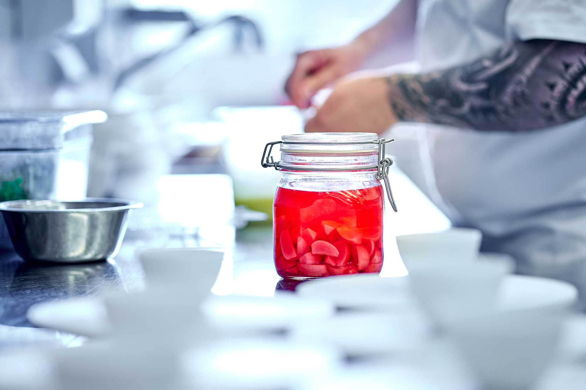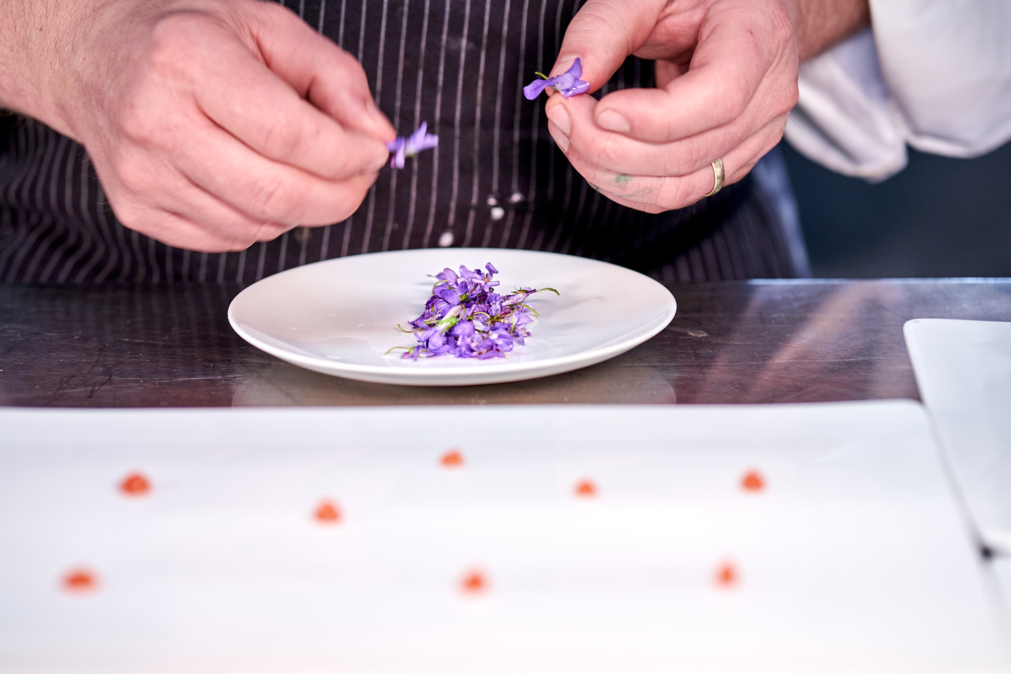 Nicht nur war mein letzter Restaurant-Besuch bald sieben Monate her, auch meine letzte Foto-Reportage in einer Küche, die für „echte Gäste“ kocht, lag jetzt so lange zurück. Und auch wenn ich beruflich nicht direkt für den Gast da bin, konnte ich die Leere ohne das, was man am liebsten tut, schon sehr gut nachfühlen. Dass ich sieben Jahre nach meinem ersten Besuch im Ifen Hotel zum Gastkoch-Dinner mit Kai Schneller nun gerade zu diesem Anlass dabei sein konnte, war besonders schön: nostalgisch wie auch geschmacklich betrachtet.