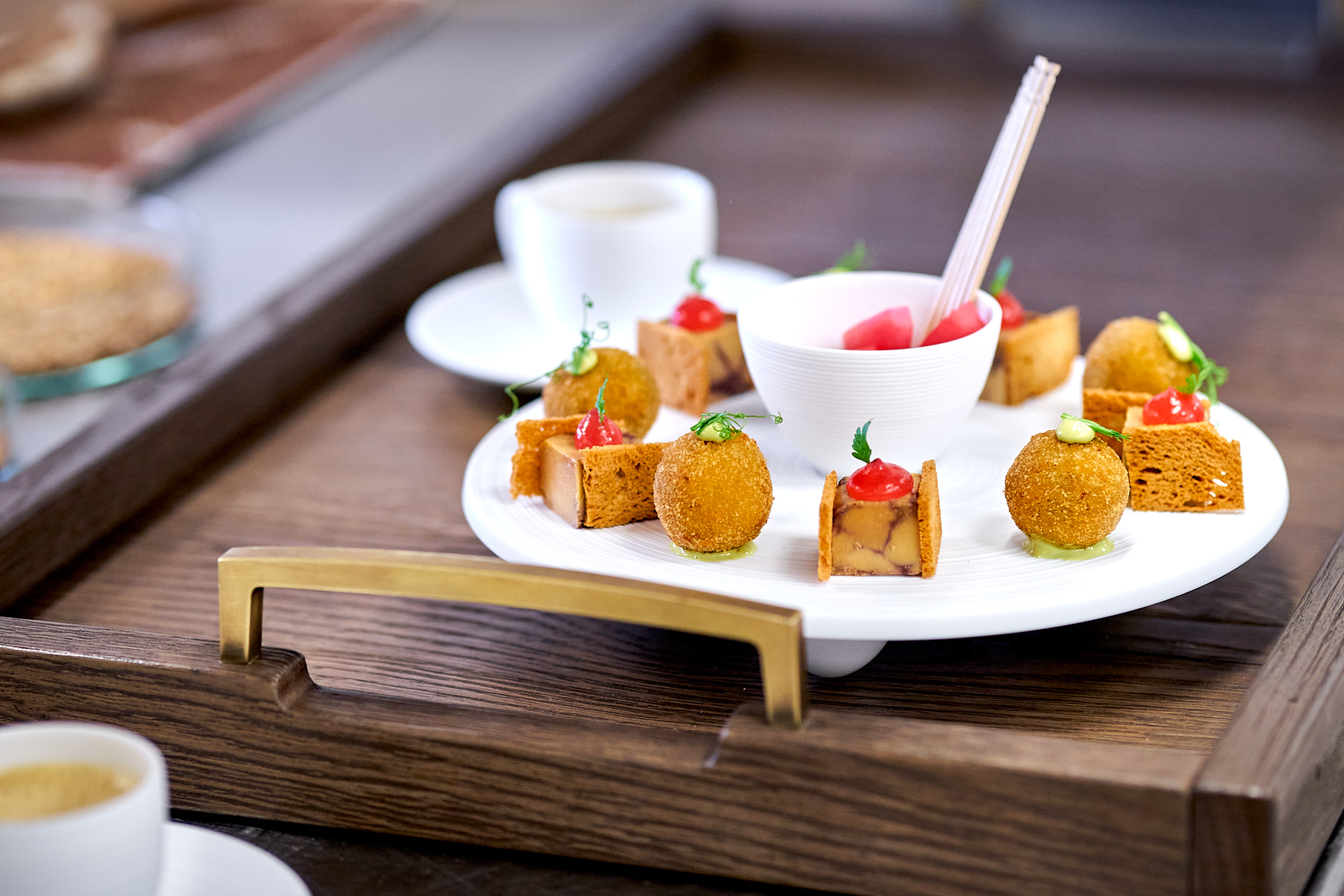 Gänseleber / Rhabarber, Praline vom Herbstschwammerl / Kürbiskern / Bärlauchsüppchen
