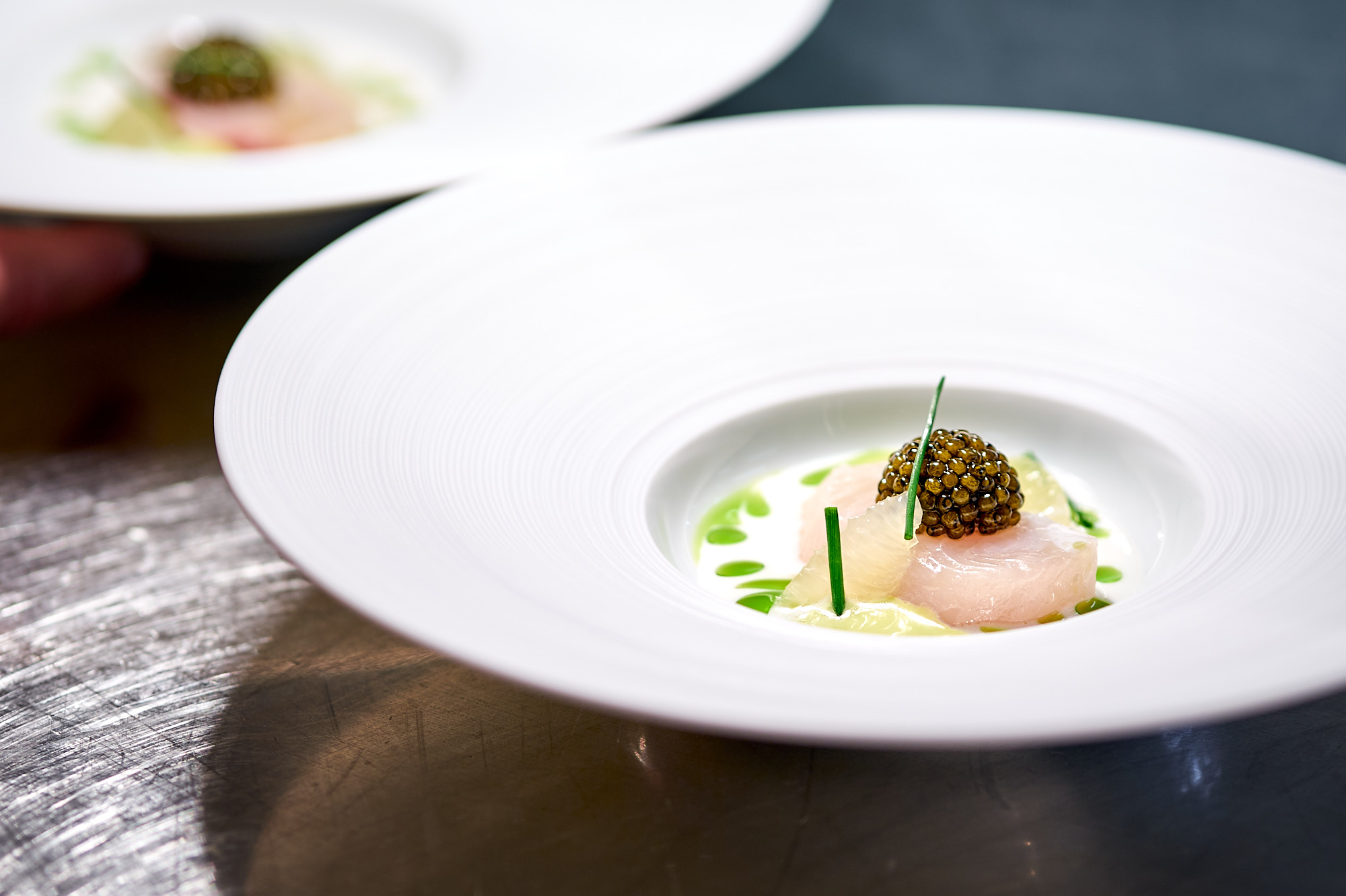 Marinierter Hamachi / Buttermilch / Schnittlauchöl / Zitrone / Imperial Kaviar