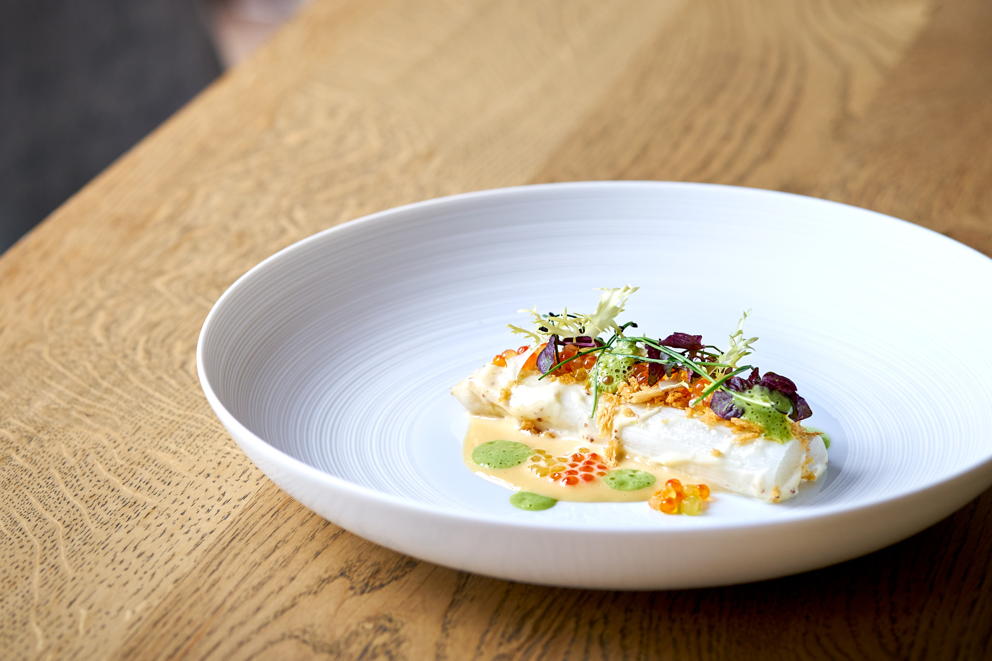 Bruchsaler Spargel – Butterbrösel – Kalamansi-Mayonnaise – Saiblingskaviar