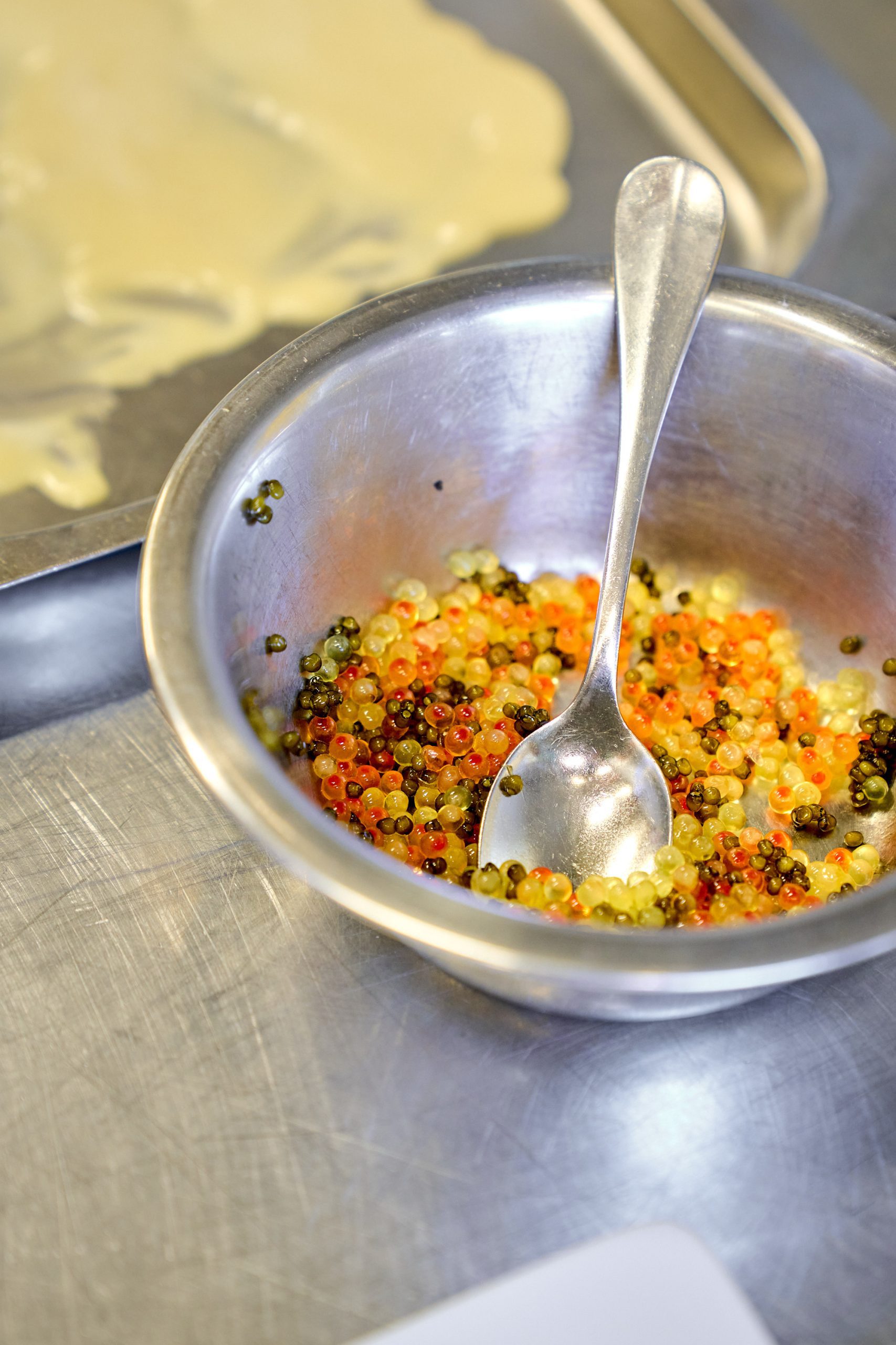 Bruchsaler weißer Spargel mit Butterbröseln Kalamansi-Mayonnaise | zweierlei Kaviar | marinierte Flusskrebse | junge Kräuter