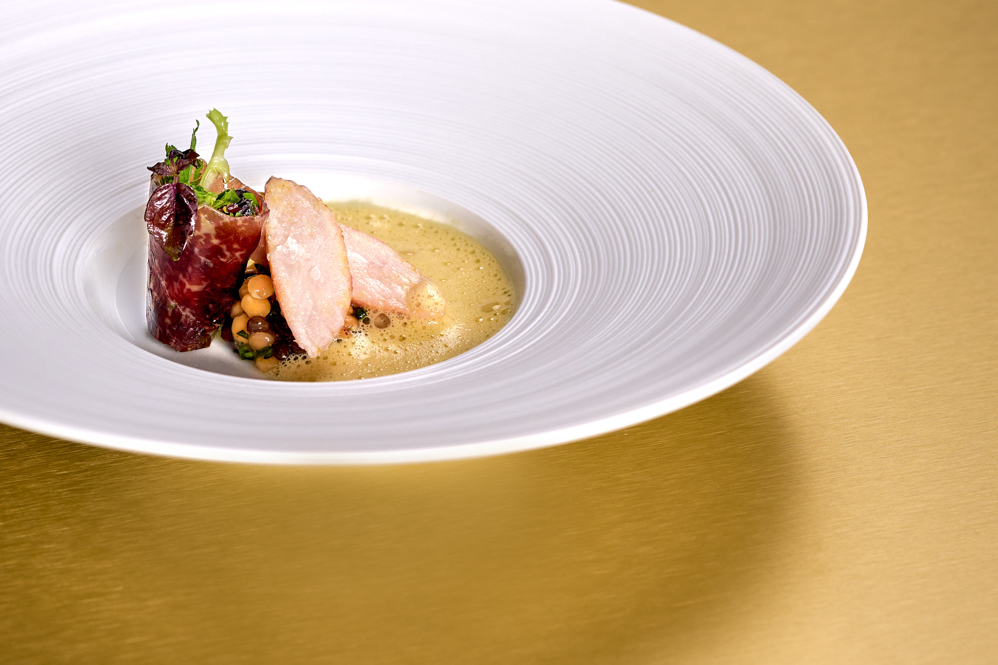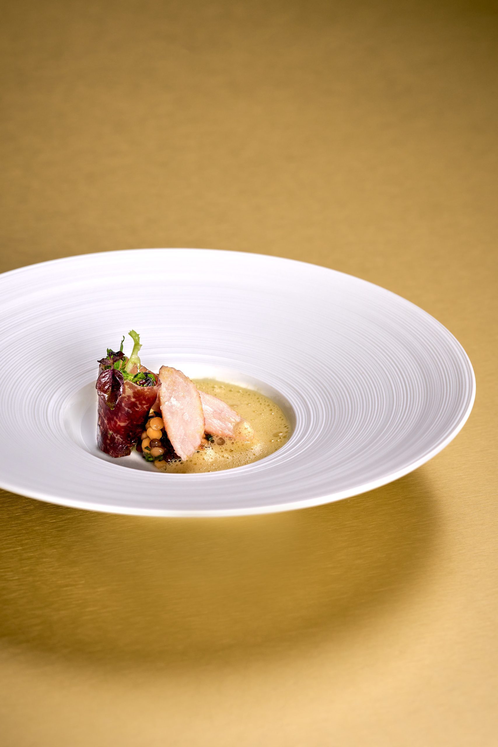 Ich begleite das Restaurant Kilian Stuba im Ifen Hotel Kleinwalsertal und die Küche von Sascha Kemmerer mittlerweile schon seit einigen Jahren fotografisch und habe viele kulinarische Eindrücke aus dem Gourmet-Restaurant im reisenswerten Kleinwalsertal textlich hier festgehalten. Die bemerkenswert klare, stringente und doch hedonistische Küche von Sascha Kemmerer basiert stets handwerklich und französisch, spielt hochintelligent mit Aromen, Assoziationen und geschmacklichen Erinnerungen und verliert nie den roten Faden durch das Menü. Die fein gearbeitete Ästhetik der Gerichte spricht für sich und kommt angenehmerweise ohne Effekthascherei, Textur-Dekonstruktionen und Posing aus – das hat diese hochfeine, balanciert-intensive Küche nämlich nicht nötig.